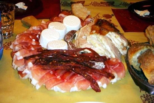 - Antipasti: selection of cold cuts, prosciutto (ham), porchetta, grilled vegetables, mozzarella di bufala