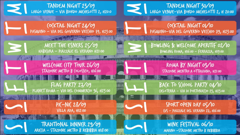 A new semester is starting, and as usual ESN Roma ASE is here to welcome all of you with a 2weeks-program full of events!