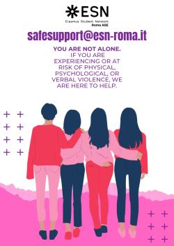 Your well-being matters. If you or someone you know requires assistance, do not hesitate to reach out. Contact us at safesupport@esn-roma.it—because you are not alone.